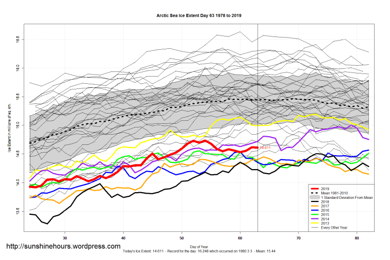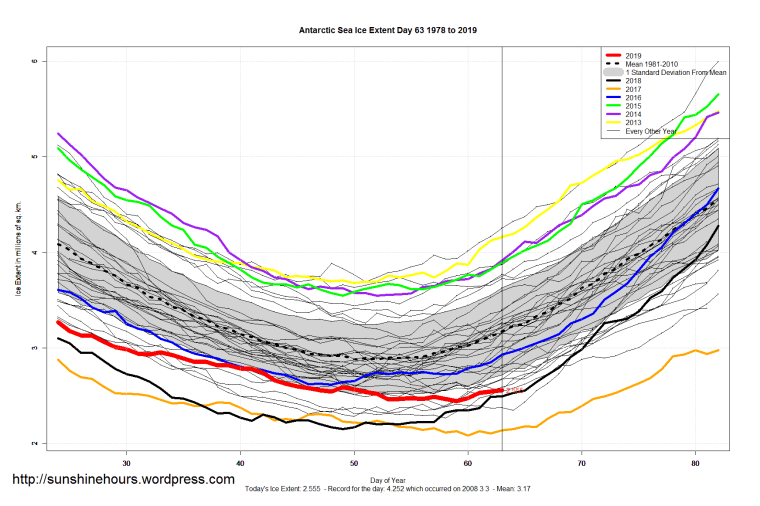 One thought on “Sea Ice Extent (Global Antarctic and Arctic) – Day 63 – 2019