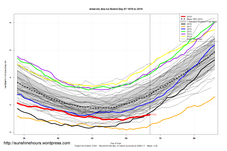 One thought on “Sea Ice Extent (Global Antarctic and Arctic) – Day 67 – 2019