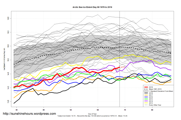 Sea Ice Extent (Global Antarctic and Arctic) – Day 68 – 2019