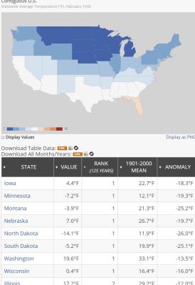 NOAA February 2019 in Montana Was -15.6°F Below The Mean