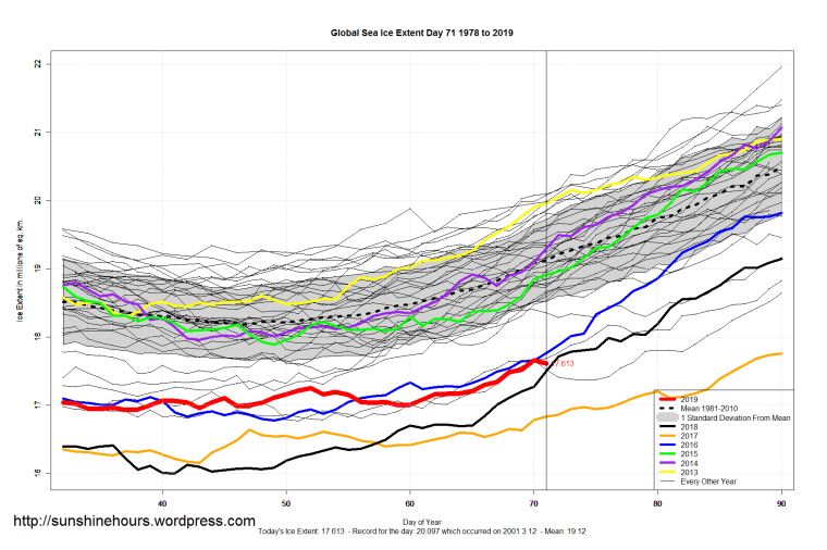 One thought on “Sea Ice Extent (Global Antarctic and Arctic) – Day 71 – 2019