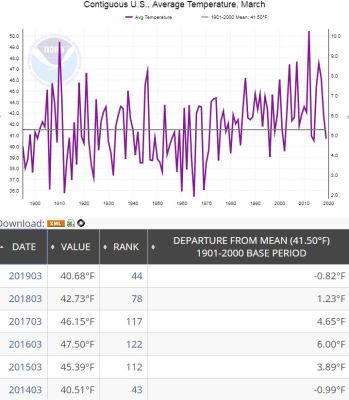 44th Coldest March in USA