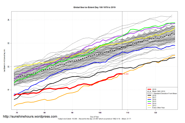Sea Ice Extent (Global Antarctic and Arctic) – Day 108 – 2019