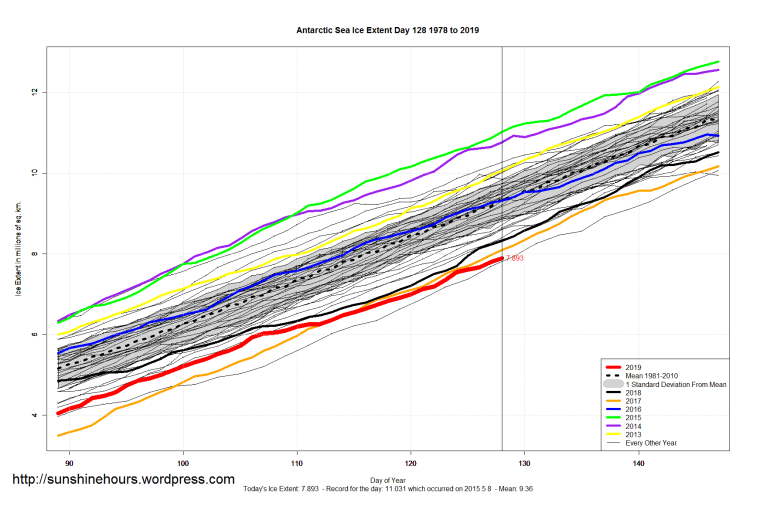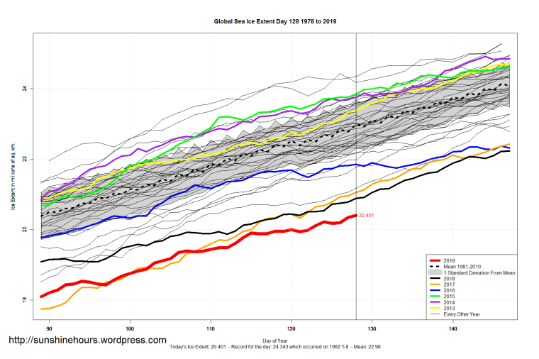 One thought on “Sea Ice Extent (Global Antarctic and Arctic) – Day 128 – 2019