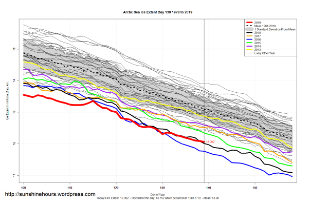 Sea Ice Extent (Global Antarctic and Arctic) – Day 139 – 2019