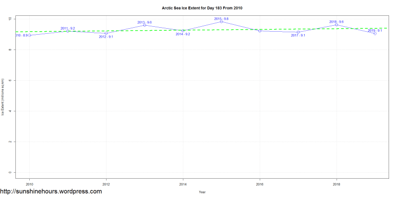 Sea Ice Extent (Global Antarctic and Arctic) – Day 183 – 2019