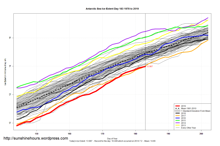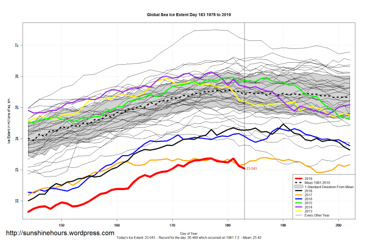 One thought on “Sea Ice Extent (Global Antarctic and Arctic) – Day 183 – 2019