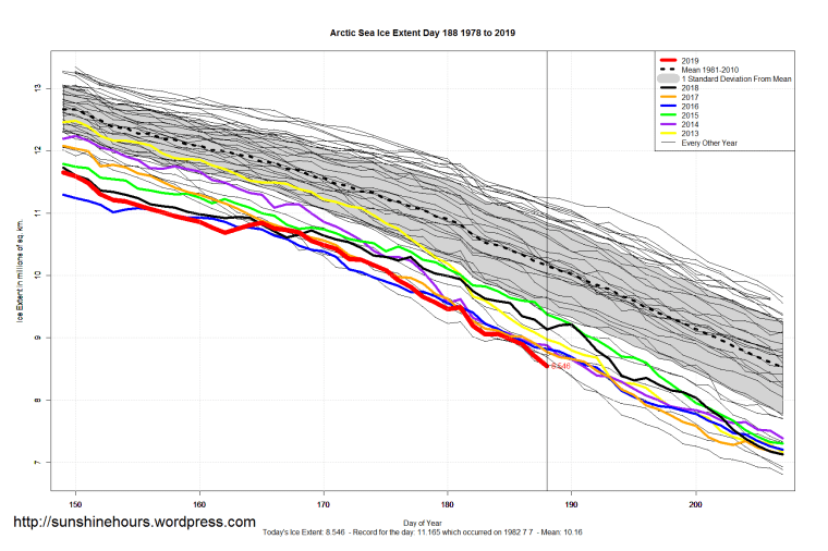 One thought on “Sea Ice Extent (Global Antarctic and Arctic) – Day 188 – 2019