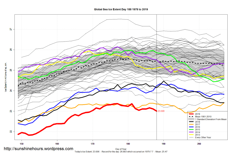 Sea Ice Extent (Global Antarctic and Arctic) – Day 188 – 2019