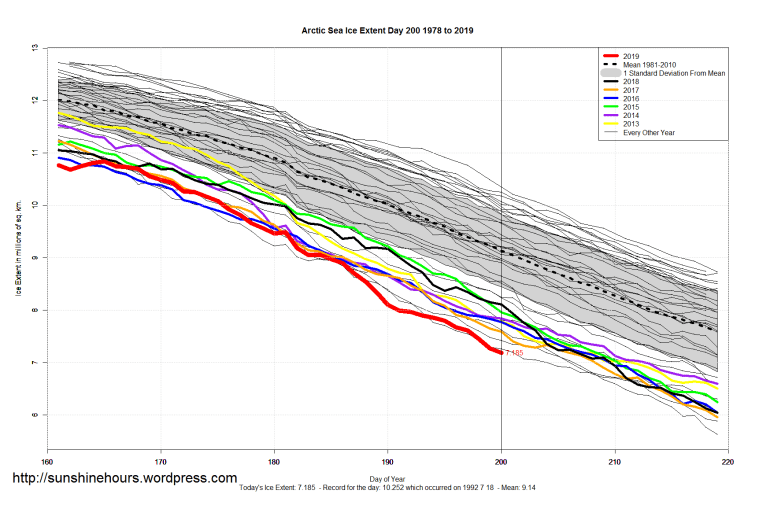 2 thoughts on “Sea Ice Extent (Global Antarctic and Arctic) – Day 200 – 2019