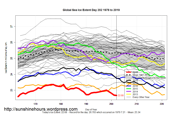 Sea Ice Extent (Global Antarctic and Arctic) – Day 202 – 2019