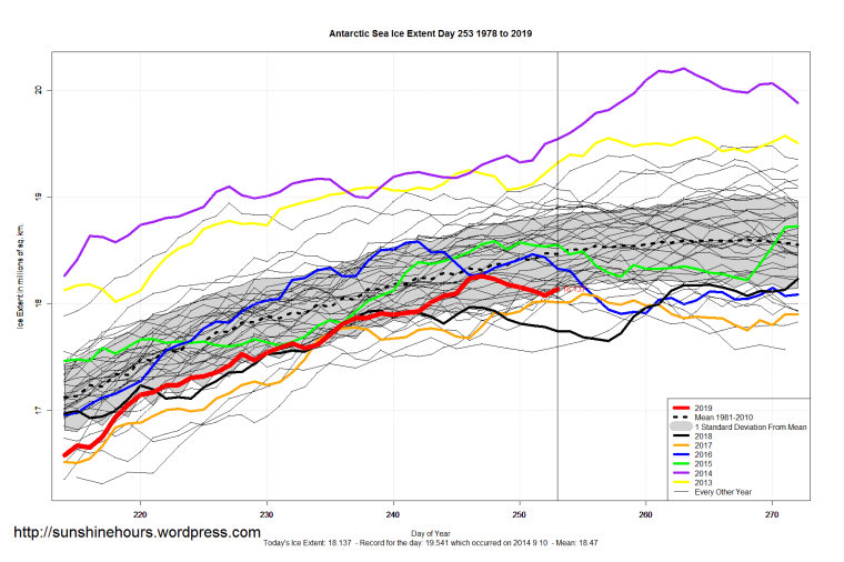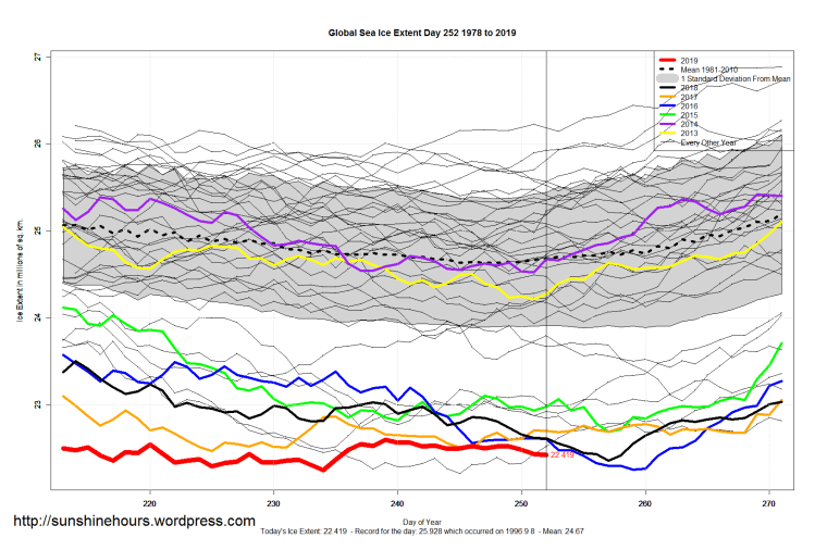 Sea Ice Extent (Global Antarctic and Arctic) – Day 253 – 2019 Published on September 11, 2019September 11, 2019 by sunshinehours1 South / North Like Loading... Related