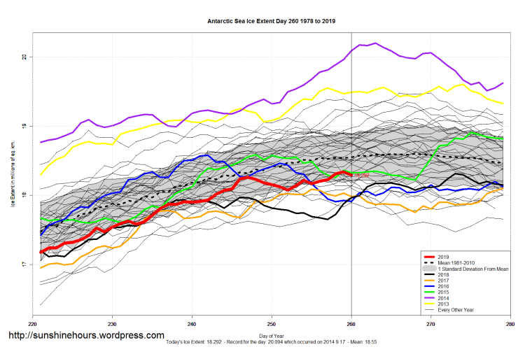 Sea Ice Extent (Global Antarctic and Arctic) – Day 260 – 2019 Published on September 18, 2019September 18, 2019 by sunshinehours1 South / North Like Loading... Related