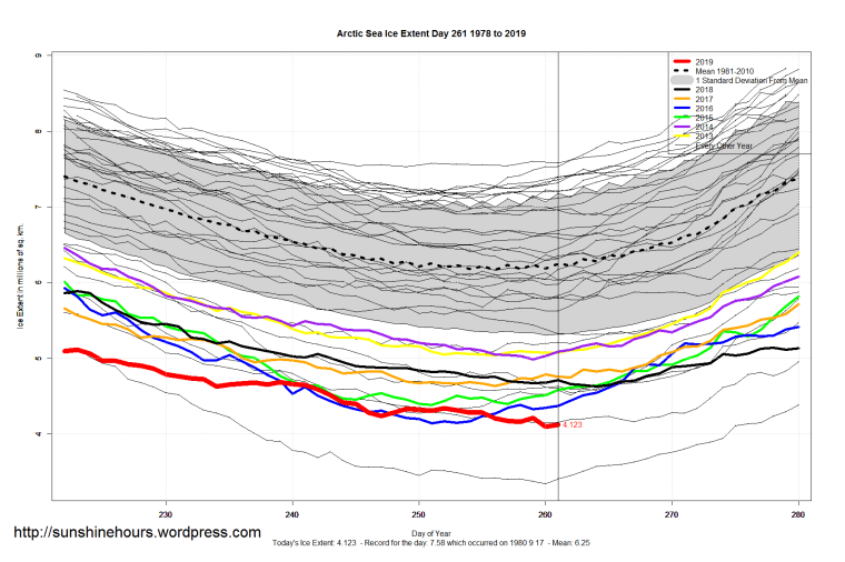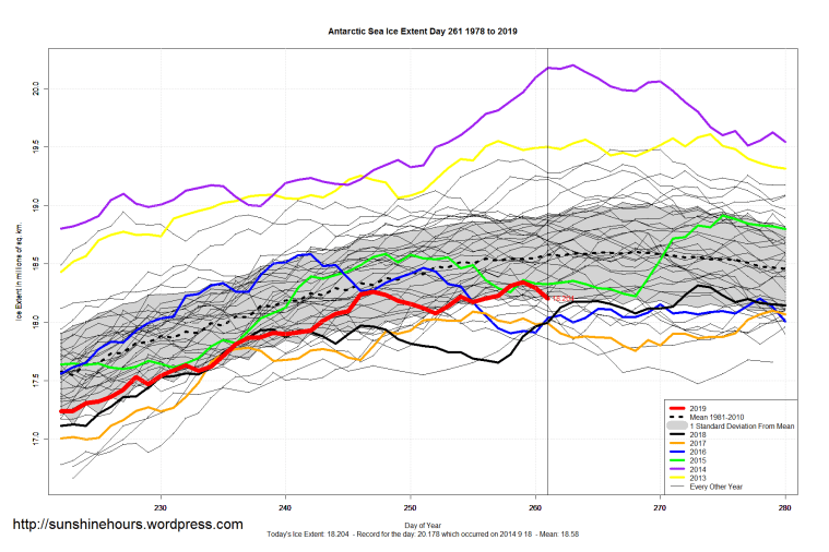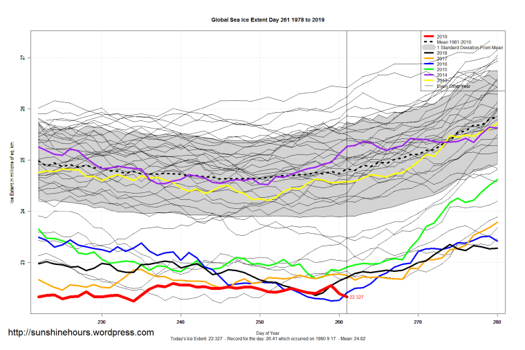 Sea Ice Extent (Global Antarctic and Arctic) – Day 261 – 2019 Published on September 19, 2019September 19, 2019 by sunshinehours1 South / North Like Loading... Related