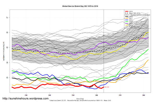 Sea Ice Extent (Global Antarctic and Arctic) – Day 263 – 2019