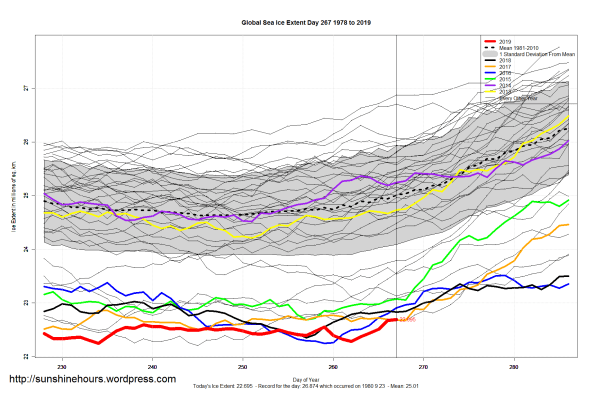 Sea Ice Extent (Global Antarctic and Arctic) – Day 267 – 2019