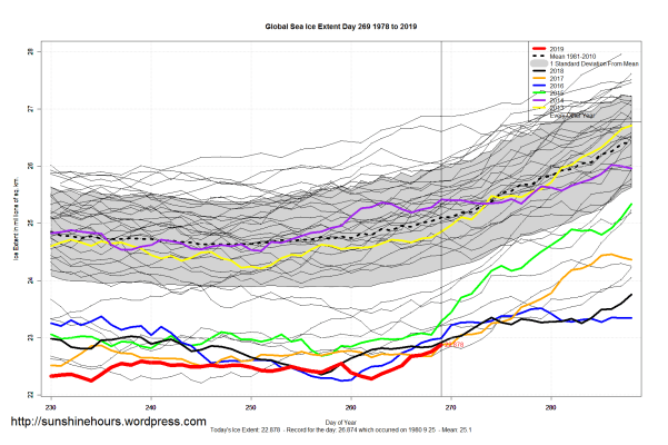 Sea Ice Extent (Global Antarctic and Arctic) – Day 269 – 2019
