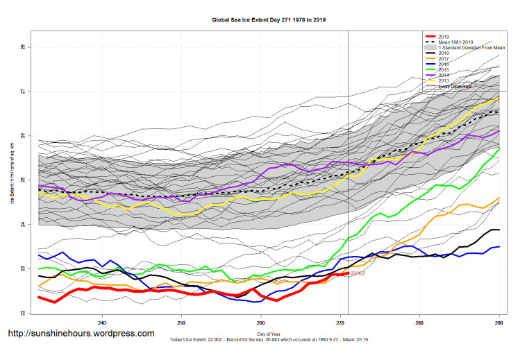Sea Ice Extent (Global Antarctic and Arctic) – Day 271 – 2019 Published on September 29, 2019September 29, 2019 by sunshinehours1 South / North Like Loading... Related