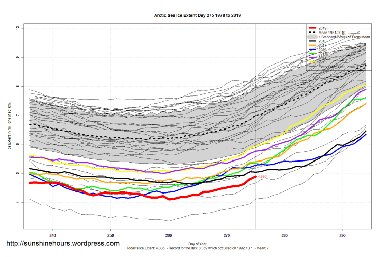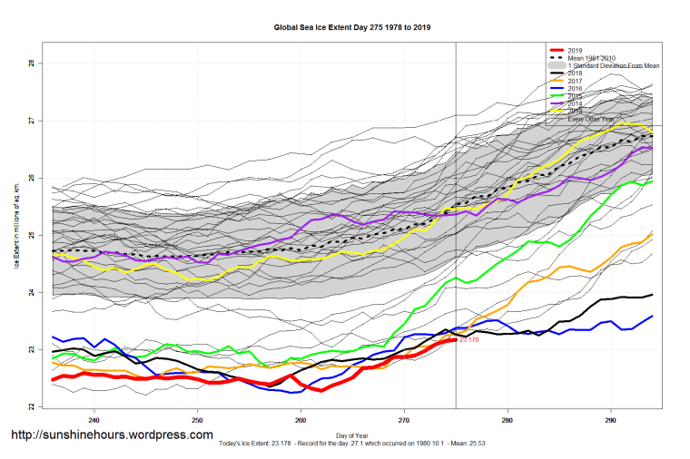 Sea Ice Extent (Global Antarctic and Arctic) – Day 275 – 2019 Published on October 3, 2019October 3, 2019 by sunshinehours1 South / North Like Loading... Related