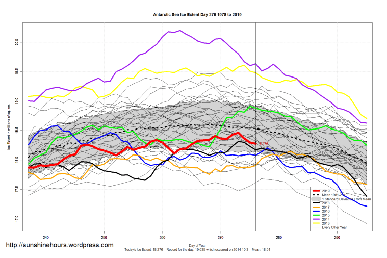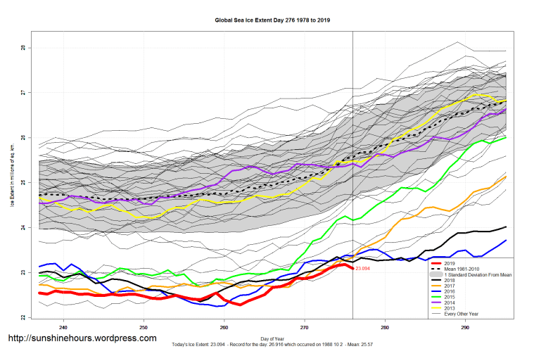 Sea Ice Extent (Global Antarctic and Arctic) – Day 276 – 2019 Published on October 4, 2019October 4, 2019 by sunshinehours1 South / North Like Loading... Related