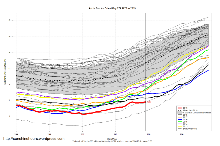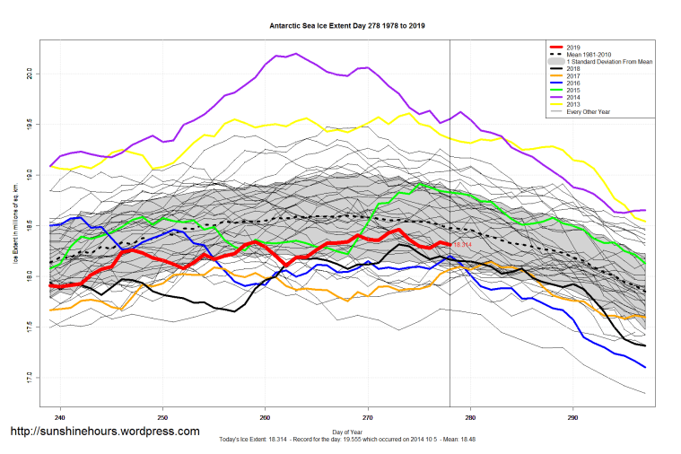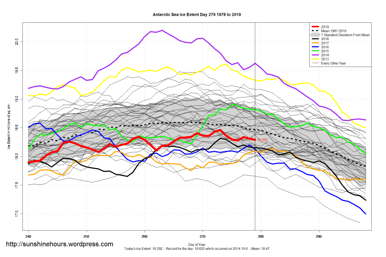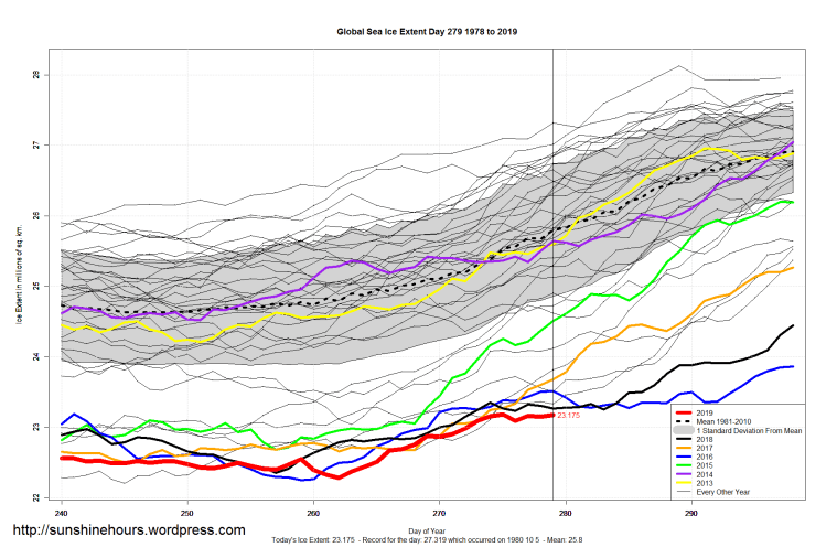 Sea Ice Extent (Global Antarctic and Arctic) – Day 279 – 2019 Published on October 7, 2019October 7, 2019 by sunshinehours1 South / North Like Loading... Related