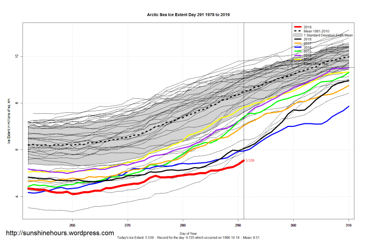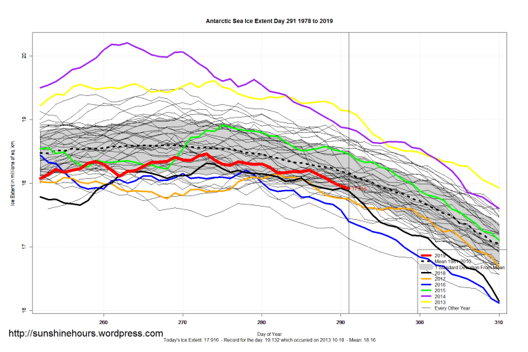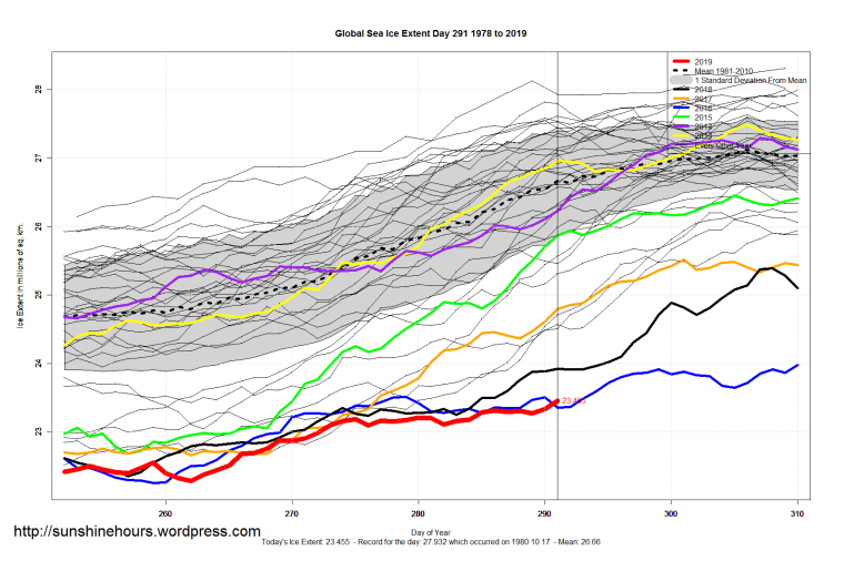 2 thoughts on “Sea Ice Extent (Global Antarctic and Arctic) – Day 291 – 2019