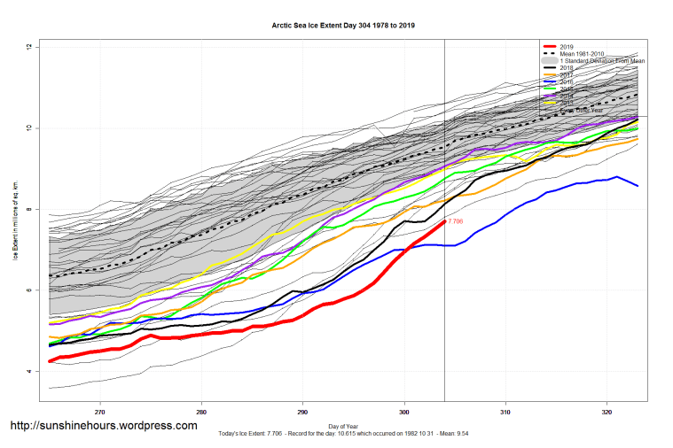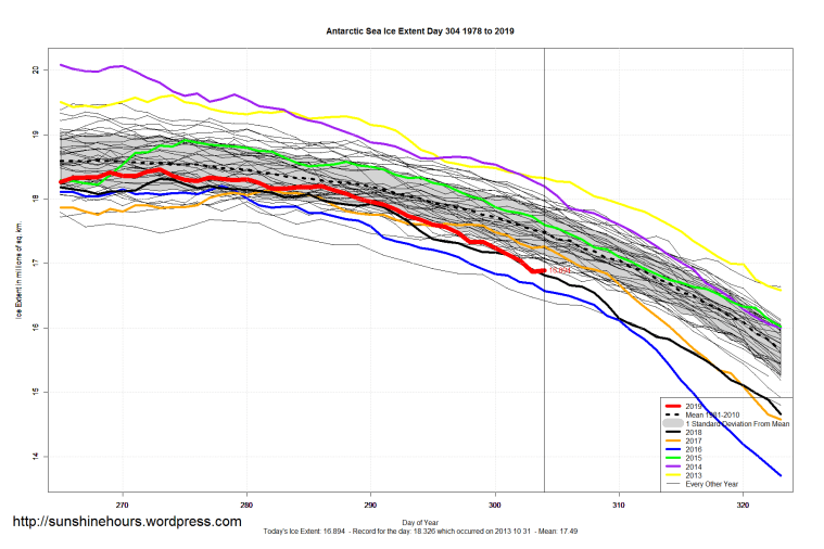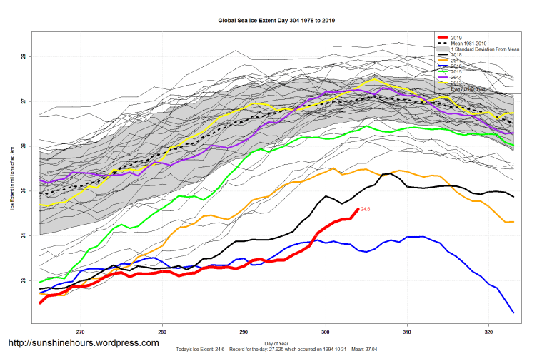 Sea Ice Extent (Global Antarctic and Arctic) – Day 304 – 2019 Published on November 1, 2019November 1, 2019 by sunshinehours1 South / North Like Loading... Related
