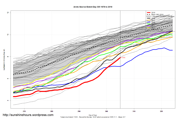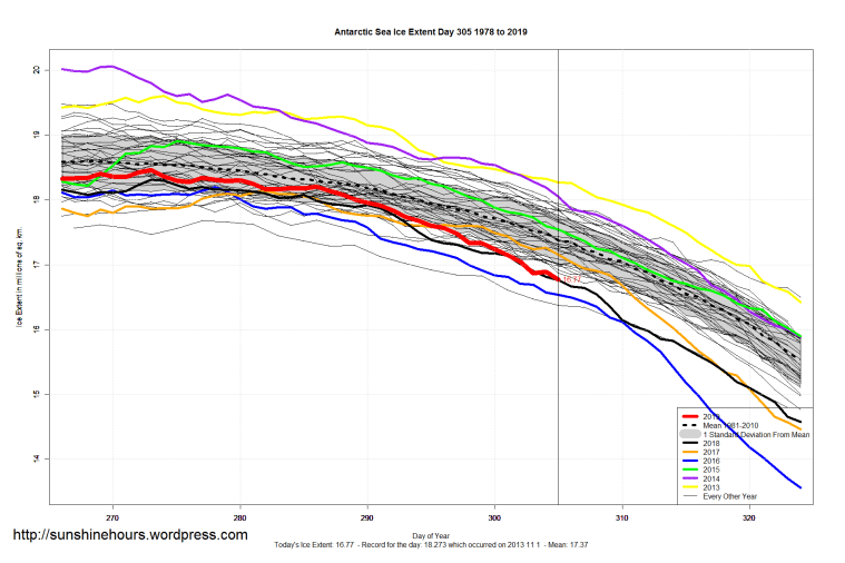 Sea Ice Extent (Global Antarctic and Arctic) – Day 305 – 2019 Published on November 2, 2019November 2, 2019 by sunshinehours1 South / North Like Loading... Related