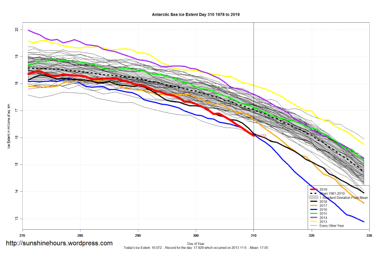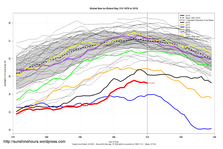 Sea Ice Extent (Global Antarctic and Arctic) – Day 310 – 2019 Published on November 7, 2019November 7, 2019 by sunshinehours1 South / North Like Loading... Related