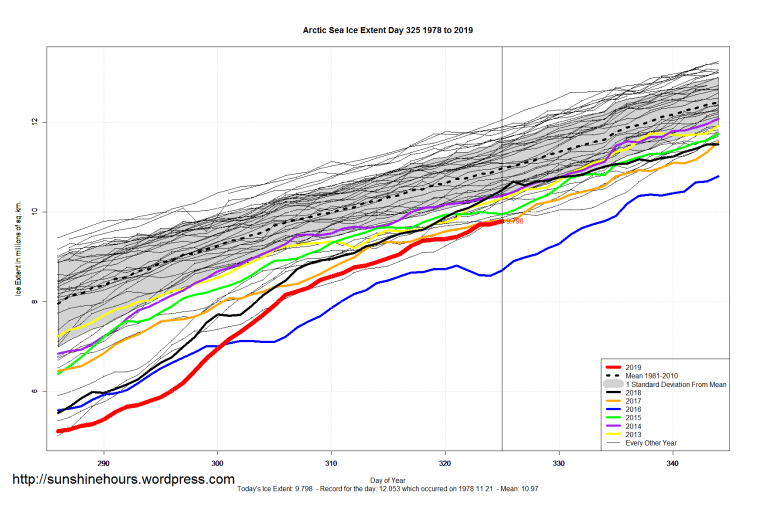 Sea Ice Extent (Global Antarctic and Arctic) – Day 325 – 2019 Published on November 22, 2019November 22, 2019 by sunshinehours1 South / North Like Loading... Related