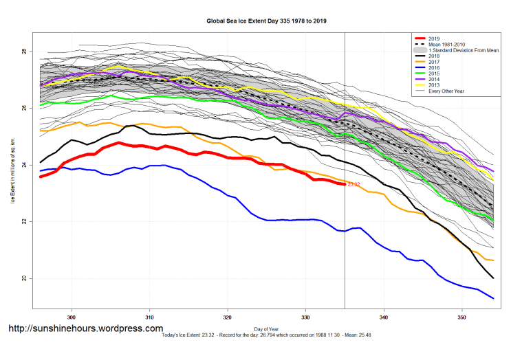 Sea Ice Extent (Global Antarctic and Arctic) – Day 335 – 2019 Published on December 2, 2019December 2, 2019 by sunshinehours1 South / North Like Loading... Related