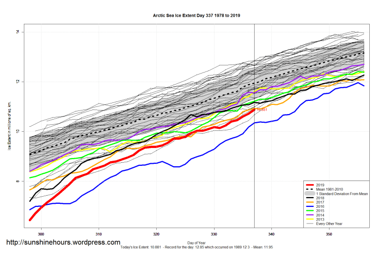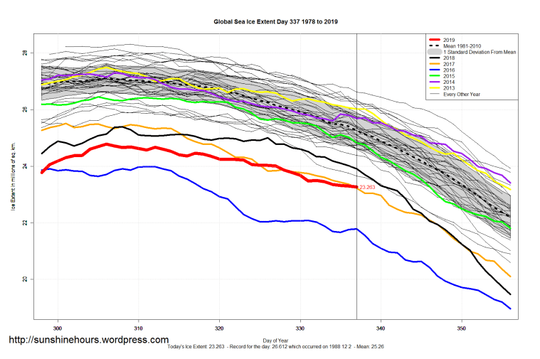 One thought on “Sea Ice Extent (Global Antarctic and Arctic) – Day 337 – 2019