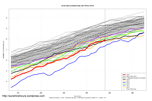 Sea Ice Extent (Global Antarctic and Arctic) – Day 348 – 2019