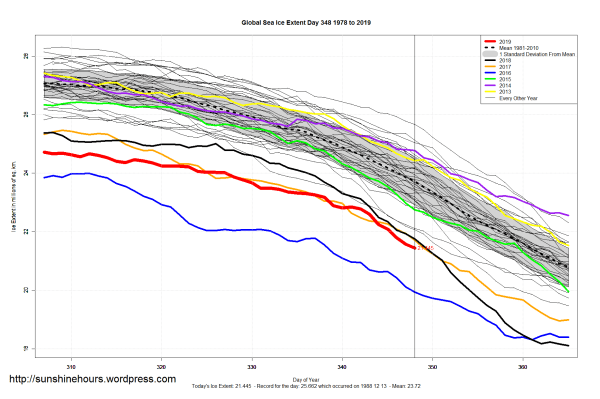 Sea Ice Extent (Global Antarctic and Arctic) – Day 348 – 2019