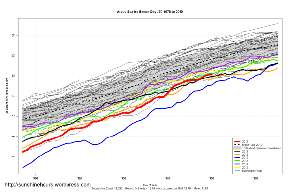 Sea Ice Extent (Global Antarctic and Arctic) – Day 350 – 2019