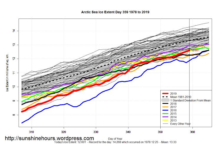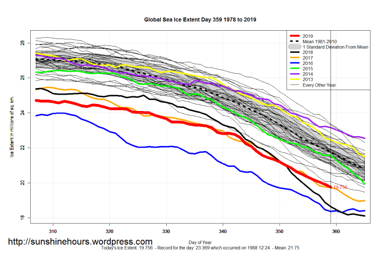 Sea Ice Extent (Global Antarctic and Arctic) – Day 359 – 2019 Published on December 26, 2019December 26, 2019 by sunshinehours1 South / North Like Loading... Related