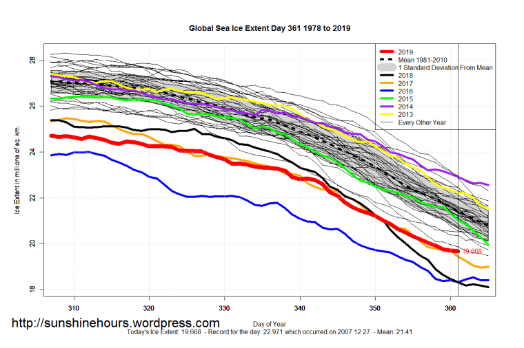 Sea Ice Extent (Global Antarctic and Arctic) – Day 361 – 2019 Published on December 28, 2019December 28, 2019 by sunshinehours1 South / North Like Loading... Related
