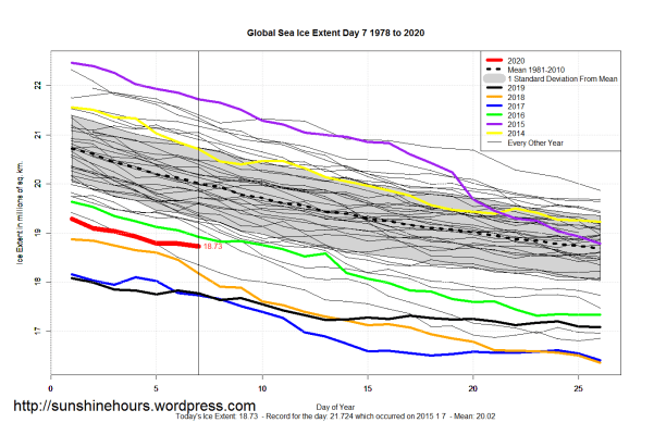 Sea Ice Extent (Global Antarctic and Arctic) – Day 7 – 2020