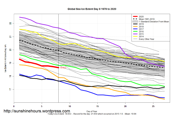 Sea Ice Extent (Global Antarctic and Arctic) – Day 8 – 2020