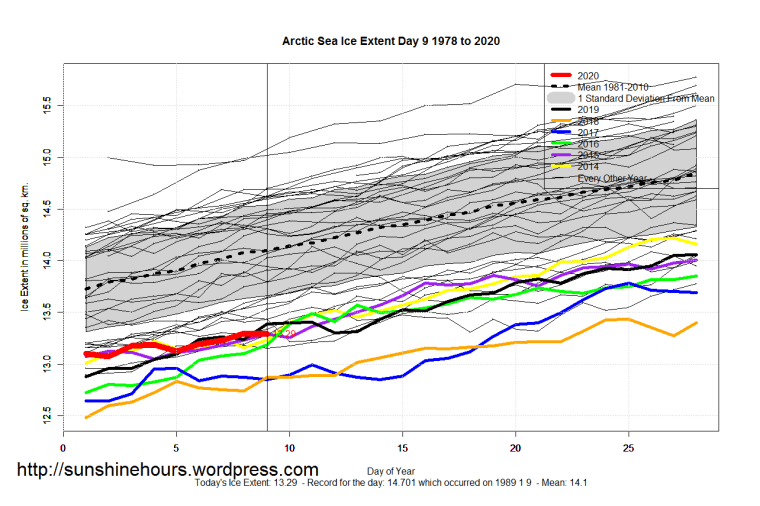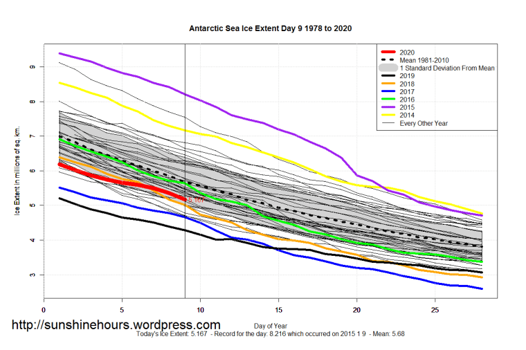Sea Ice Extent (Global Antarctic and Arctic) – Day 9 – 2020 Published on January 10, 2020January 10, 2020 by sunshinehours1 South / North Like Loading... Related
