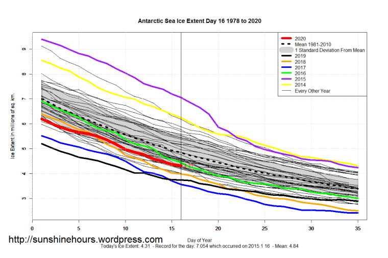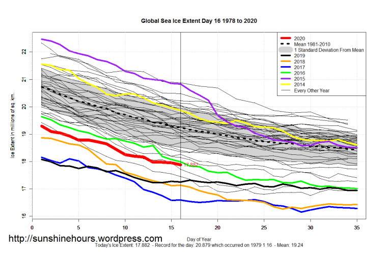 Sea Ice Extent (Global Antarctic and Arctic) – Day 16 – 2020 Published on January 17, 2020January 17, 2020 by sunshinehours1 South / North Like Loading... Related