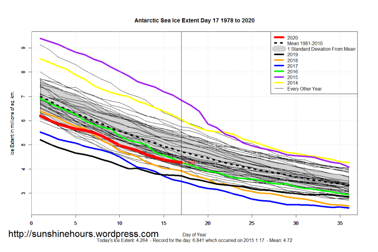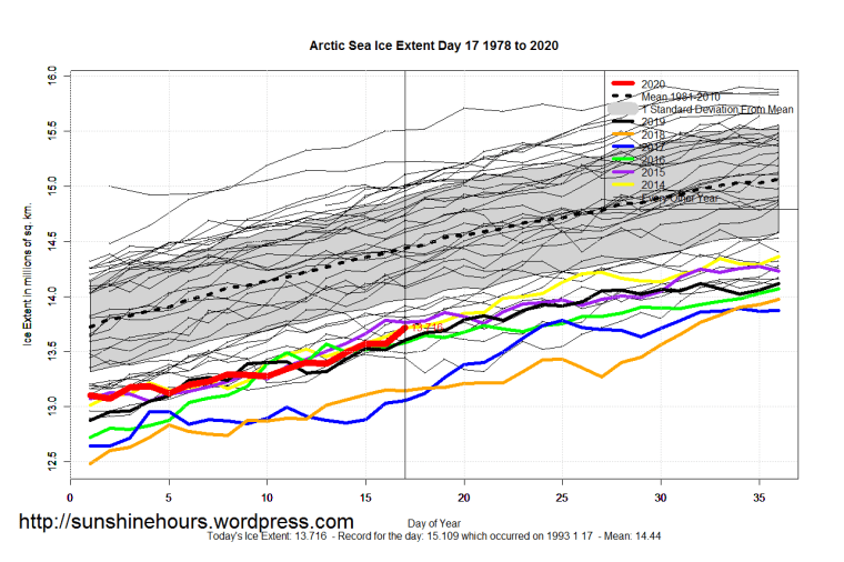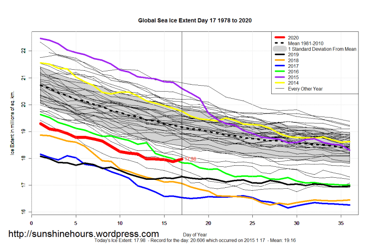 Sea Ice Extent (Global Antarctic and Arctic) – Day 17 – 2020 Published on January 18, 2020January 18, 2020 by sunshinehours1 South / North Like Loading... Related