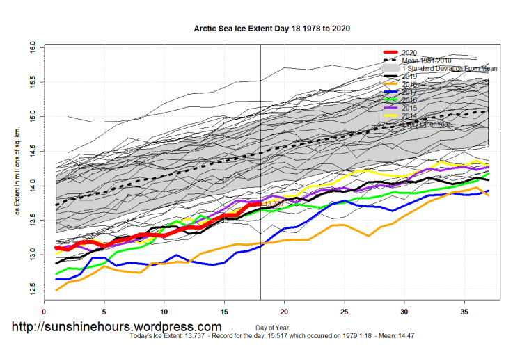 Sea Ice Extent (Global Antarctic and Arctic) – Day 18 – 2020 Published on January 19, 2020January 19, 2020 by sunshinehours1 South / North Like Loading... Related