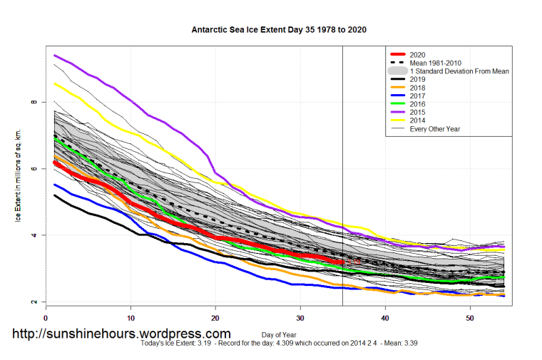 2 thoughts on “Sea Ice Extent (Global Antarctic and Arctic) – Day 35 – 2020