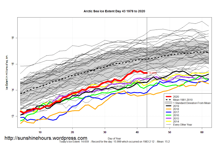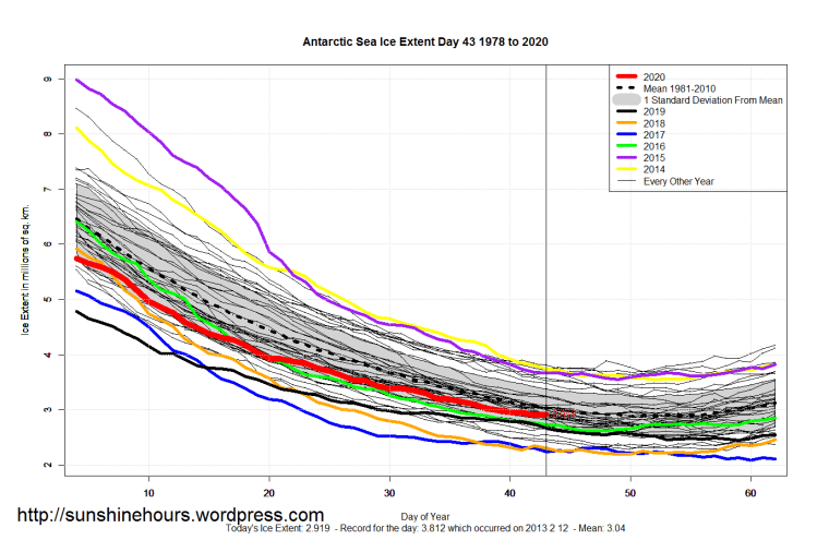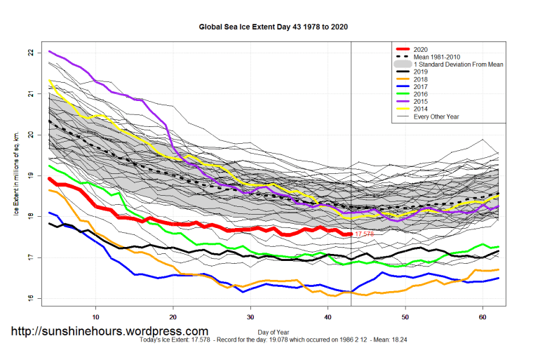 One thought on “Sea Ice Extent (Global Antarctic and Arctic) – Day 43 – 2020