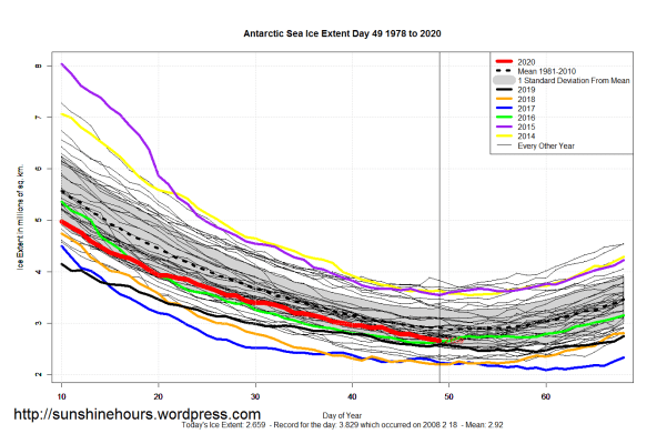 Sea Ice Extent (Global Antarctic and Arctic) – Day 49 – 2020