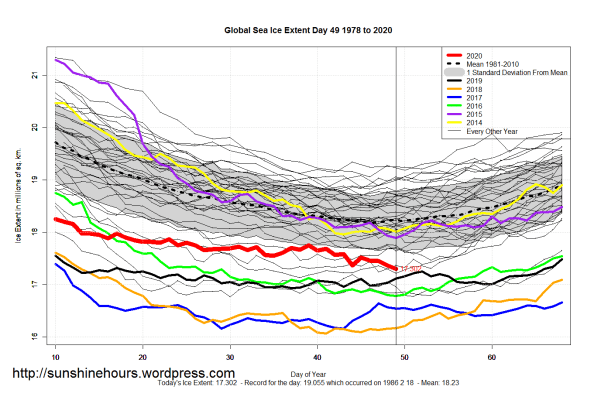 Sea Ice Extent (Global Antarctic and Arctic) – Day 49 – 2020