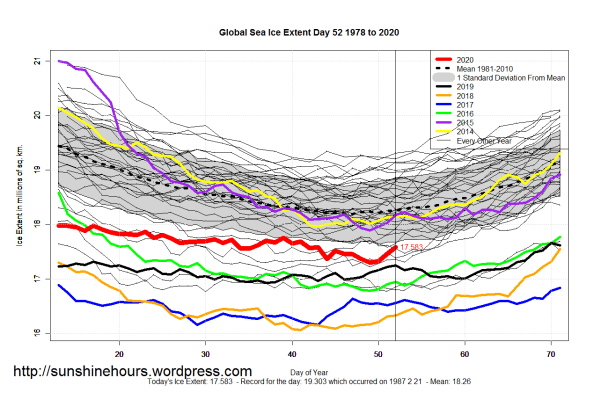 Sea Ice Extent (Global Antarctic and Arctic) – Day 52 – 2020