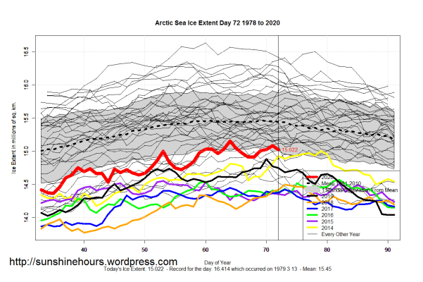 Sea Ice Extent (Global Antarctic and Arctic) – Day 72 – 2020