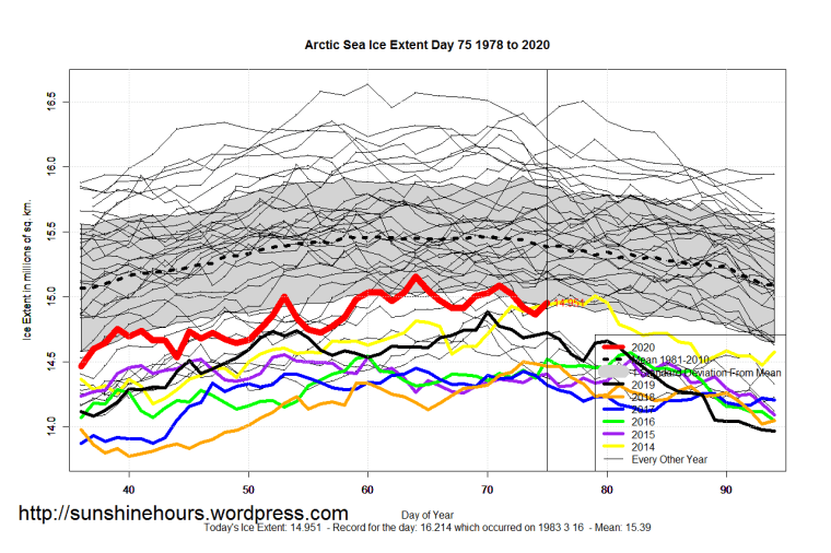 2 thoughts on “Sea Ice Extent (Global Antarctic and Arctic) – Day 75 – 2020”
